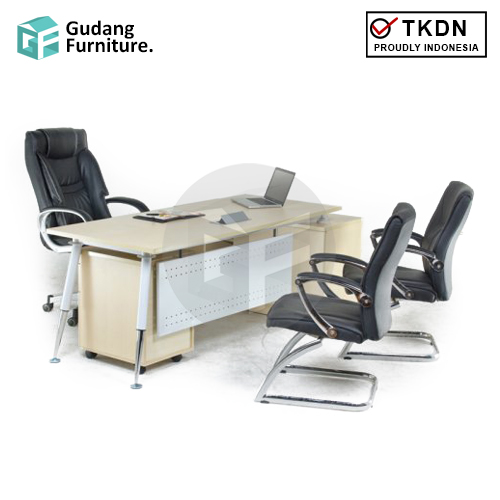 Meja Kerja Kantor Direktur Aditech FR 02 Lengkungan yang menghiasi bentuk top table serta kaki mejanya yang unik, membuat meja kerja ini terlihat sangat dinamis dan modis. Cocok ditempatkan di sebuah kantor berdesain serba modern.
