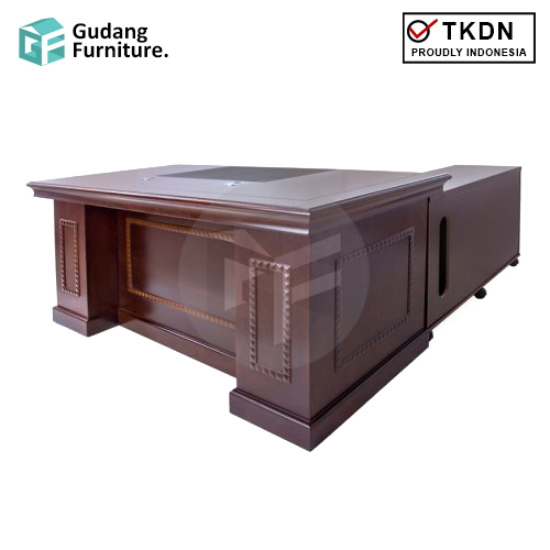 Meja Kerja Kantor Direktur Modern Minimalis Aditech XE 03 Plat berongga menjadi profil sekaligus “penutup” terdepan pada meja direktur minimalis ini, cocok untuk ditempatkan di ruang kantor Anda yang bernuansa modern.