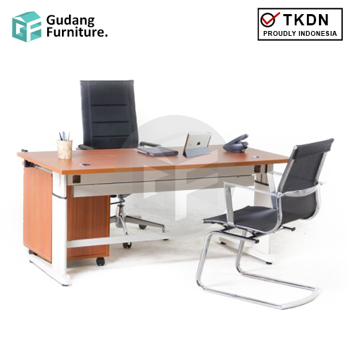Meja ini cocok bagi Anda yang mencari furniture berdesain modern untuk menghiasi kantor Anda. Panel depan serta kaki meja yang terbuat dari metal menjadi penentu utama dari desain modern ini.