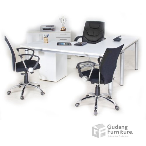 Meja Kerja Kantor Direktur Aditech FR 02 Lengkungan yang menghiasi bentuk top table serta kaki mejanya yang unik, membuat meja kerja ini terlihat sangat dinamis dan modis. Cocok ditempatkan di sebuah kantor berdesain serba modern.