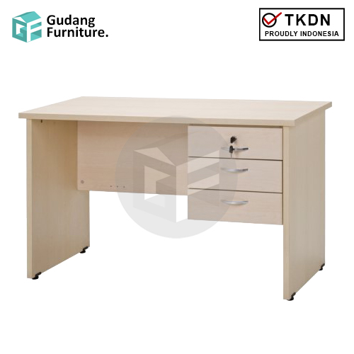 Meja berdesain simpel ini dibuat dalam ukuran yang pas, sesuai dengan prinsip ergonomis dan kenyamanan di ruang kerja, serta tidak akan memakan banyak ruang dalam penempatannya.